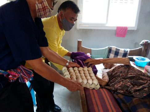 ดร.ศักดิ์ศรี ไชยกุฉิณ พร้อมคณะและ อสม.ประจำหมู่บ้านได้นำถุงเครื่องอุปโภค บริโภค จำนวน 10ถุงไปมอบให้กับผู้ป่วยติดเตียงและผู้ยากไร้ตามโครงการและวัตถุประสงค์อีกต่อไป.