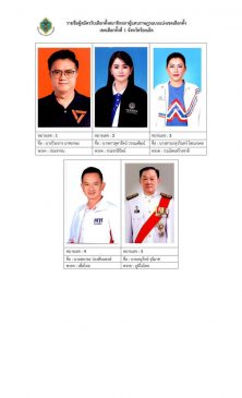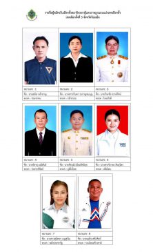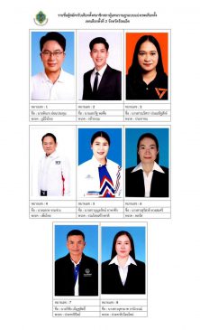 เขต3 นางรัชนี พลซื่อ เบอร์ 3,เขต4 นายนีโอ พลซื่อ เบอร์ 5,เขต5 นางสาวรวินดา วรกาญจนบุญ เบอร์ 2,เขต6 นายพิชัย น้ำกระจาย เบอร์ 8,เขต7 – เบอร์ -,เขต8 – เบอร์ –