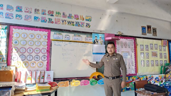 ด.ต.นิติกร การกวี ครูตำรวจแดร์ (Dare.) ทำการสอน ตามโครงการการศึกษาเพื่อต่อต้านการใช้ยาเสพติดในเด็กนักเรียน(Dare.) เพื่อสร้างภูมิคุ้มกันด้านยาเสพติดให้กับนักเรียน โรงเรียนบ้านเปลือย(สามัคคีราษฎร์ประสิทธิ์) ชั้น ป.4-6 (25คน)