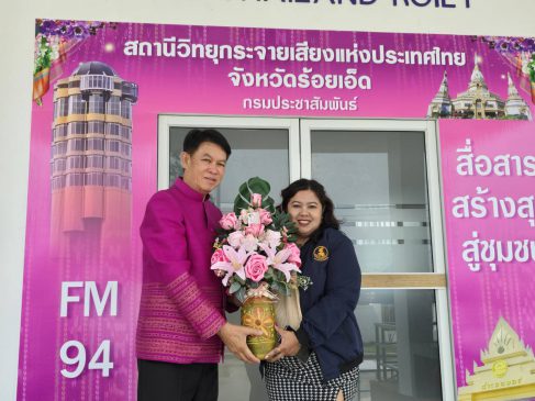และตอนบ่ายร่วมงานพิธีทำบุญอาคารสถานีวิทยุกระจายเสียงแห่งประเทศไทยจังหวัดร้อยเอ็ด เพื่อความเป็นสิริมงคล โดยมีนายดุสิต สิงห์คีรี ที่ปรึกษาอธิบดีกรมประชาสัมพันธ์, นางพนิดา จันทวัฒน์ ผู้อำนวยการสำนักงานประชาสัมพันธ์ที่ 2, นางสาวพรนภา ชาชุมพร ประชาสัมพันธ์จังหวัดร้อยเอ็ด และนางสาวพรหมพร เที่ยงธรรม ผู้อำนวยการสถานีวิทยุกระจายเสียงแห่งประเทศไทยจังหวัดร้อยเอ็ด เข้าร่วมพิธี พร้อมกันนี้ยังมีผู้บริหารในสังกัดกรมประชาสัมพันธ์ หัวหน้าส่วนราชการ และหน่วยงานที่เกี่ยวข้อง เข้าร่วมงานอย่างพร้อมเพรียง บรรยากาศเป็นไปด้วยความเรียบร้อยและอบอุ่น สะท้อนถึงความร่วมมือของทุกภาคส่วนในการสนับสนุนภารกิจด้านการสื่อสารและการประชาสัมพันธ์ของภาครัฐในพื้นที่จังหวัดร้อยเอ็ด