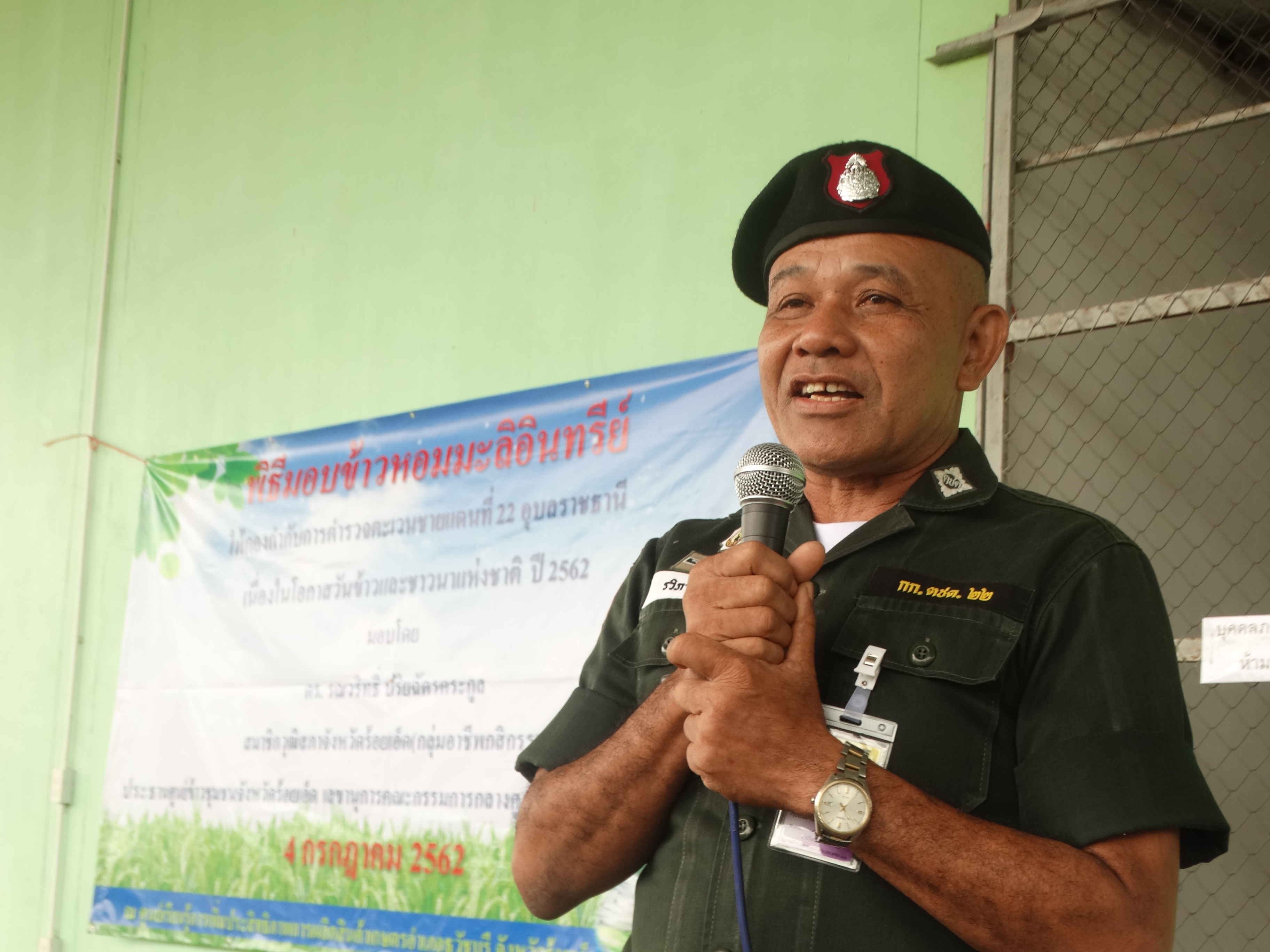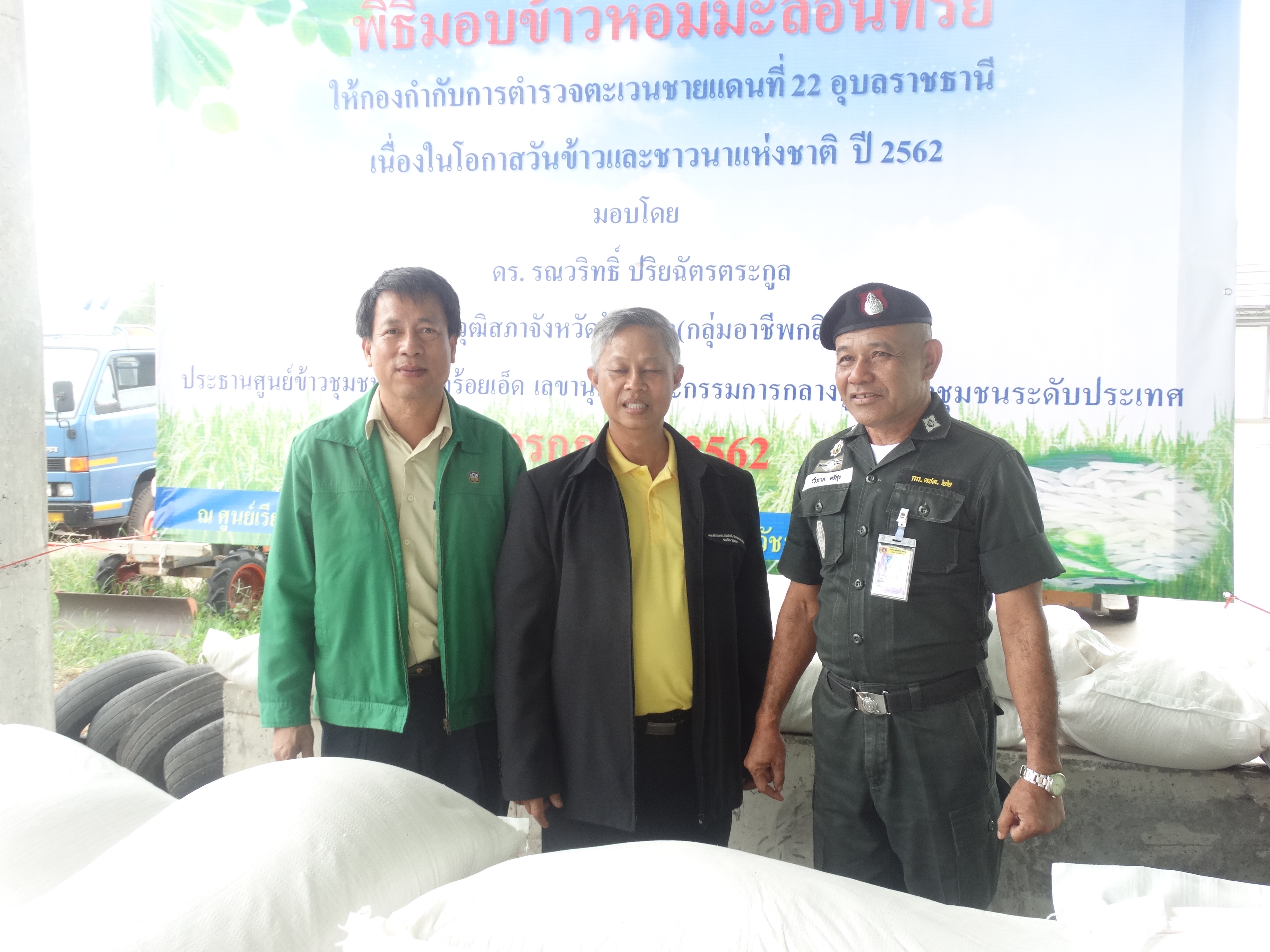 ร้อยเอ็ดศูนย์ข้าวชุมชนระดั บประเทศมอบข้าวหอมมะลิอินทรีย์ 8.2 ตันในวันข้าวและชาวนาแห่งชาติ แก่ตำรวจตระเวนชายแดนที่ 22 เพื่อเป็นอาหารกลางวันในโรงเรี ยนตำรวจตระเวนชายแดนในสมเด็ จพระกนิษฐาธิราชเจ้ากรมสมเด็ จพระเทพรัตนราชสุ ดาฯสยามบรมราชกุมารี