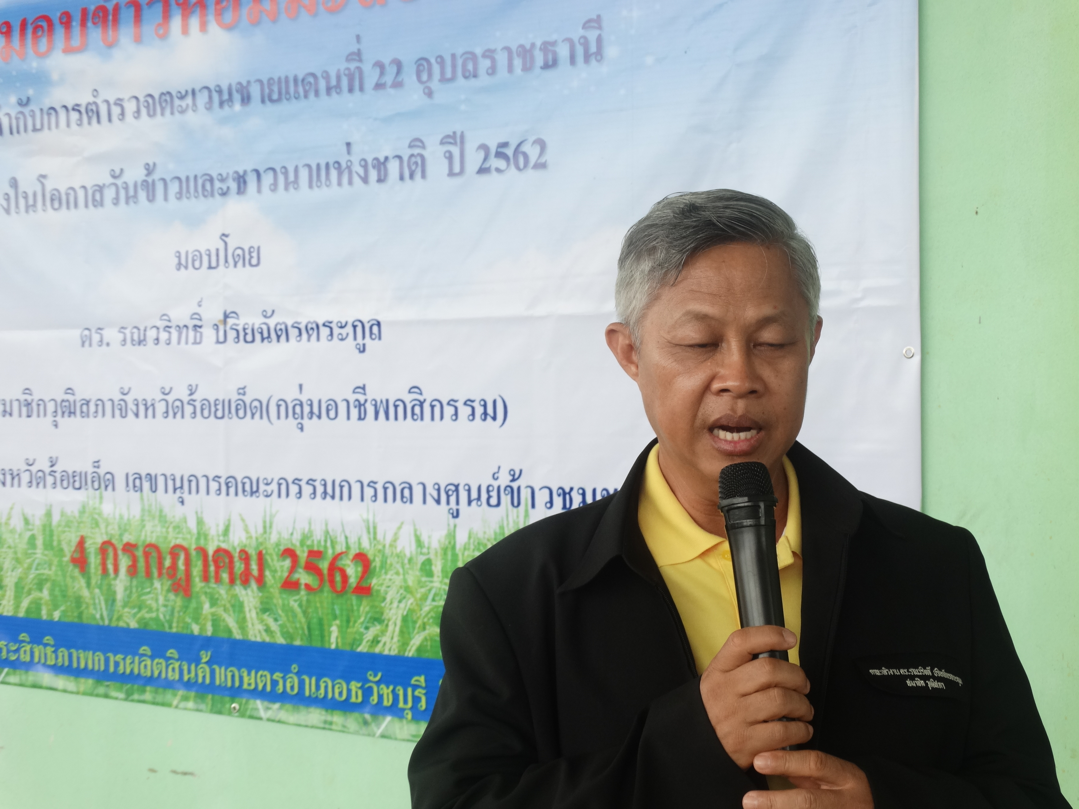 โดยดร.รณวริทธิ์ ปริยฉัตรตระกูล สมาชิกวุฒิสภากลุ่มอาชีพกสิกรรม ในนามประธานศูนย์ข้าวชุมชนจั งหวัดร้อยเอ็ด และคณะกรรมการกลางศูนย์ข้าวชุ มชนระดับประเทศ และคณะศูนย์ศพก.ผลิตสินค้ าเกษตร,ธกสร้อยเอ็ด,เกษตรจังหวั ด,ศูนย์เมล็ดพันธุ์ข้าวร้อยเอ็ ดและข้าราชการอำเภอธวัชบุรี