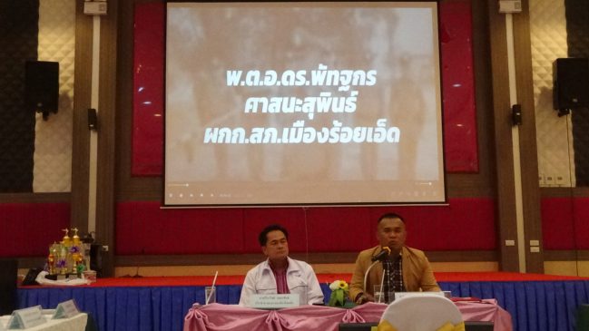 พ.ต.อ.ดร.พัทฐกร ศาสนะสุพินธ์ ผกก.สภ.เมืองร้อยเอ็ด รองประธาน กล่าวว่า.-ขอบขอบคุณ กรรมการ กต.ตร.ฯที่สนับสนุนการยิงปืน มีหลายภาคเอาแบบอย่าง ไม่ได้ใช้งบทางการ นับว่าเป็นการสร้างความพร้อมเจ้าหน้าที่ตำรวจเพื่อรับมือการเกิดอาชญากรรม ที่มีตัวอย่างมาแล้วเมื่อเร็วๆนี้ ตอนนี้ได้มีการพัฒนาตัวอาคารห้องใช้งานต่างๆให้ดูดีขึ้น เรื่องสถานที่จอดรถคดี เราไปเช่าที่อื่นเพื่อเก็บ ให้มีพื้นที่ว่างใช้งานมากๆ เรื่องการจับปรับและจะปรับที่ด่านเลย เพื่อความสะดวก เรื่องรถแข่งเราตรวจเข้มเพราะสร้างความรำคาญมาก